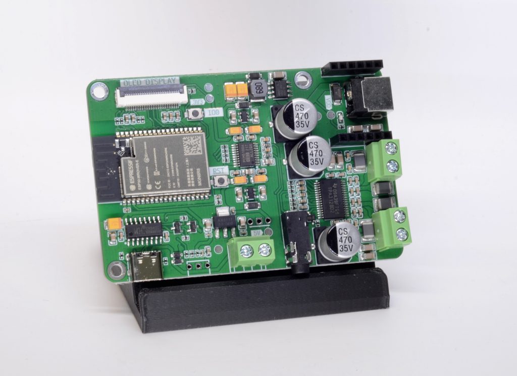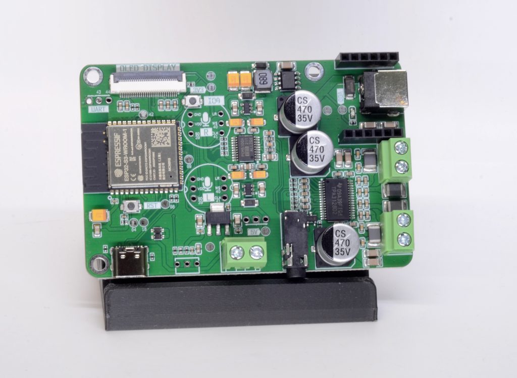 Amped-ESP32 combines ubiquitous ESP32 with a PCM5100 HiFi DAC teamed up with a highly efficient TPA3110D2 D-class amplifier. It brings all the best from the HiFi-ESP32 model and adds an onboard amp to form a complete solution that can be paired with speakers directly.