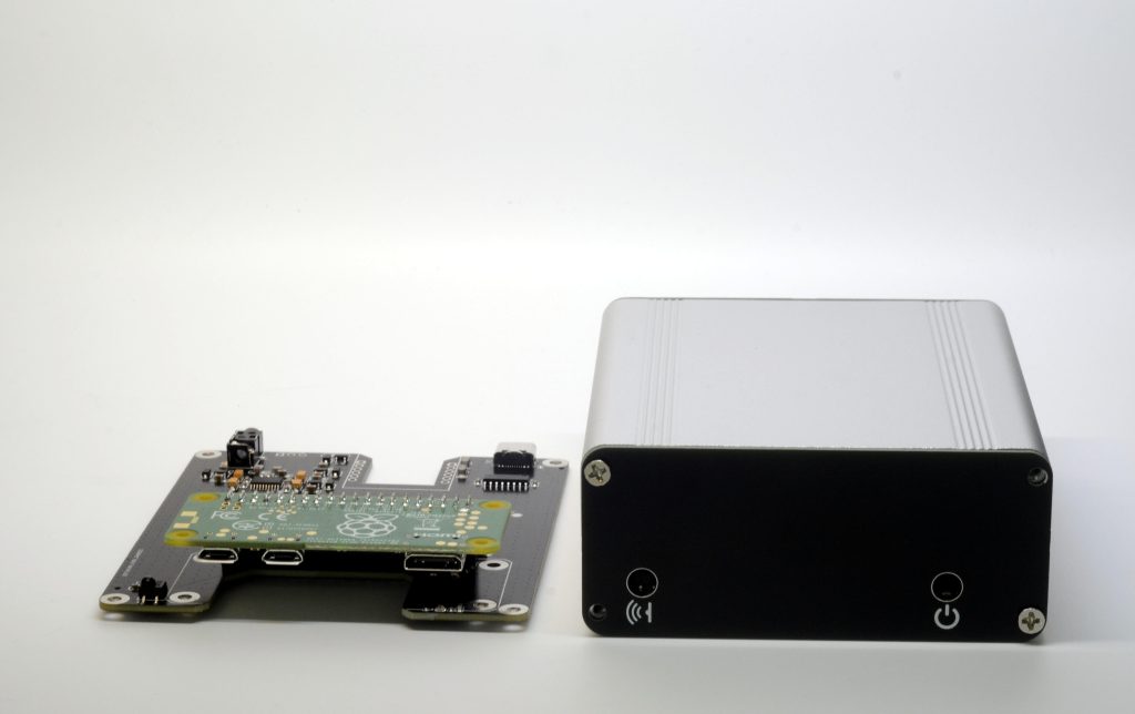 The HiFi Raspberry Media Center is a cased and feature-packed version of the board that is designed specifically for Raspberry Pi Zero boards, adding onboard Ethernet, IR reader, and RGB LED indication. With a minimalistic but functional design inspired by commercial audio gear, it offers a more professional look and feel.